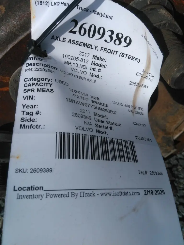 USED: USED VOLVO STEER AXLE