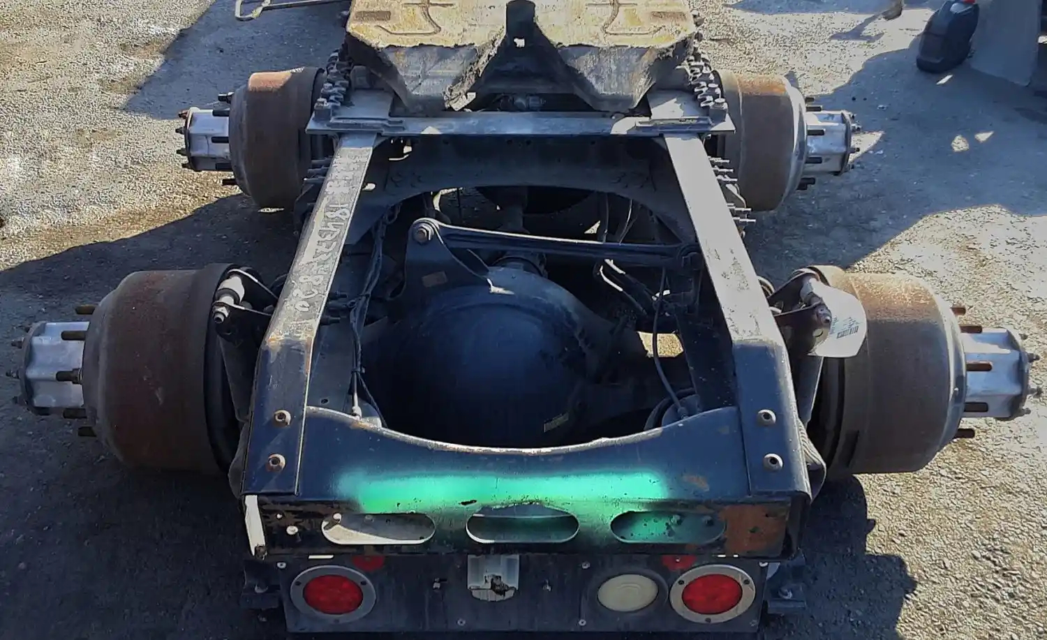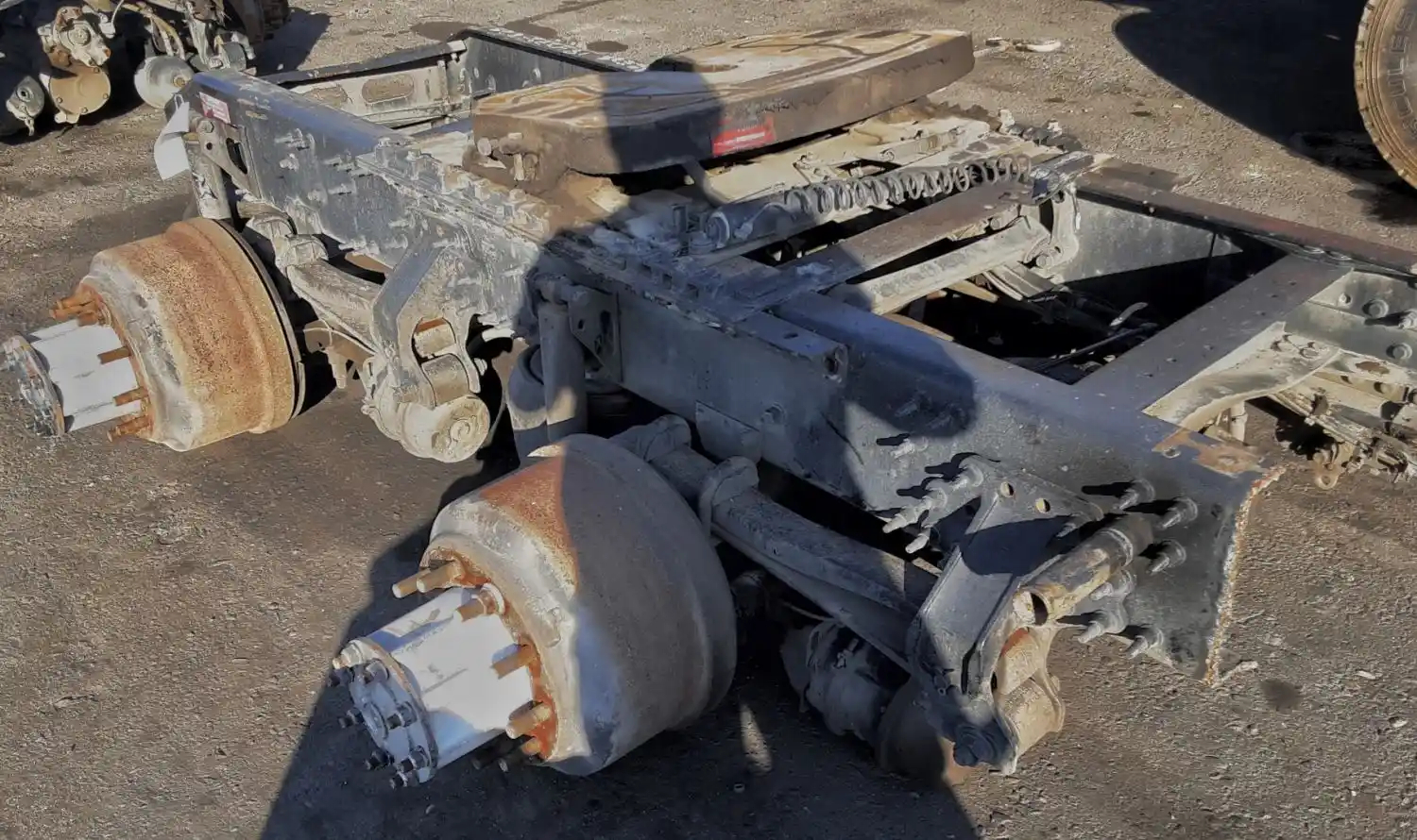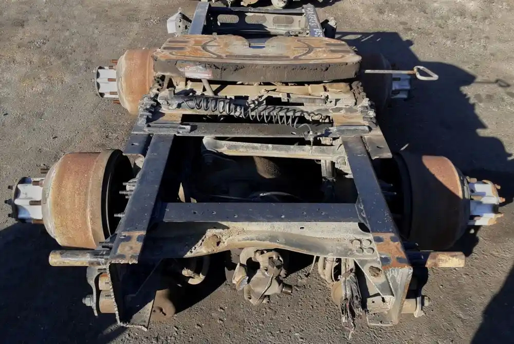Used: Used 2012 Volvo Corporate Air 40K Tandem Suspension Cutoff w/ MT4014X - 3.55 Ratio Diffs & Housings. 10 Hole Pilot, Air Drum Brakes, ABS, STD Track. P/N MD2014X4DFRNN504355, C813121R2280S, MR2014X4MFRNN503355, E613121P1966, S/N FOR01331072, FOR01331073. FIFTH WHEEL SOLD SEPARATELY.
