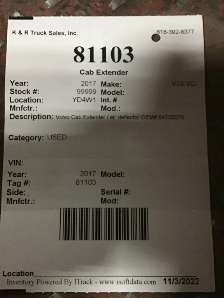 USED: USED Volvo Cab Extender / air deflector OEM# 84730270