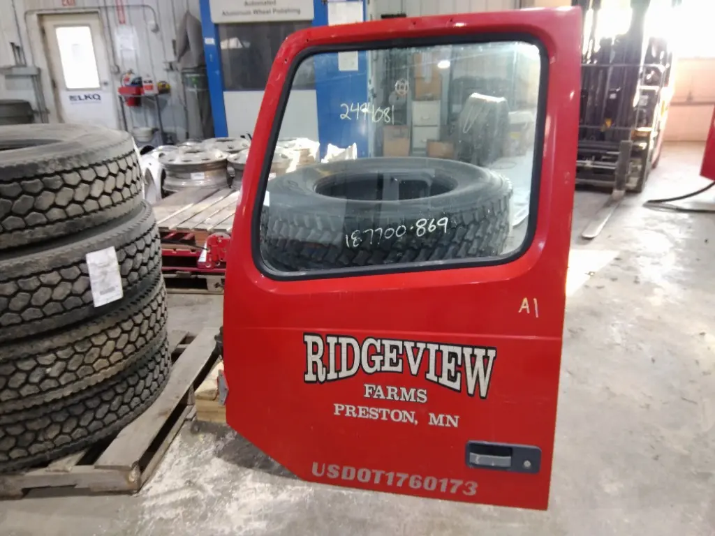 USED - A: USED - A USED LEFT/DRIVER SIDE FRONT DOOR OFF A 1999 VOLVO VN. FULL GLASS STYLE, MIRROR NOT INCLUDED, MANUAL WINDOW, RED IN COLOR.
