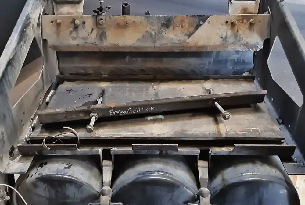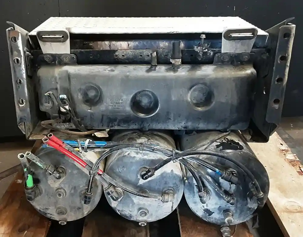 Used: Used 2013 Volvo VNL Driver Side LH Battery Box w/ Aluminum Cover, 4 Battery Capacity, 30.5" x 13" x 11", Includes 3 Air Tanks.