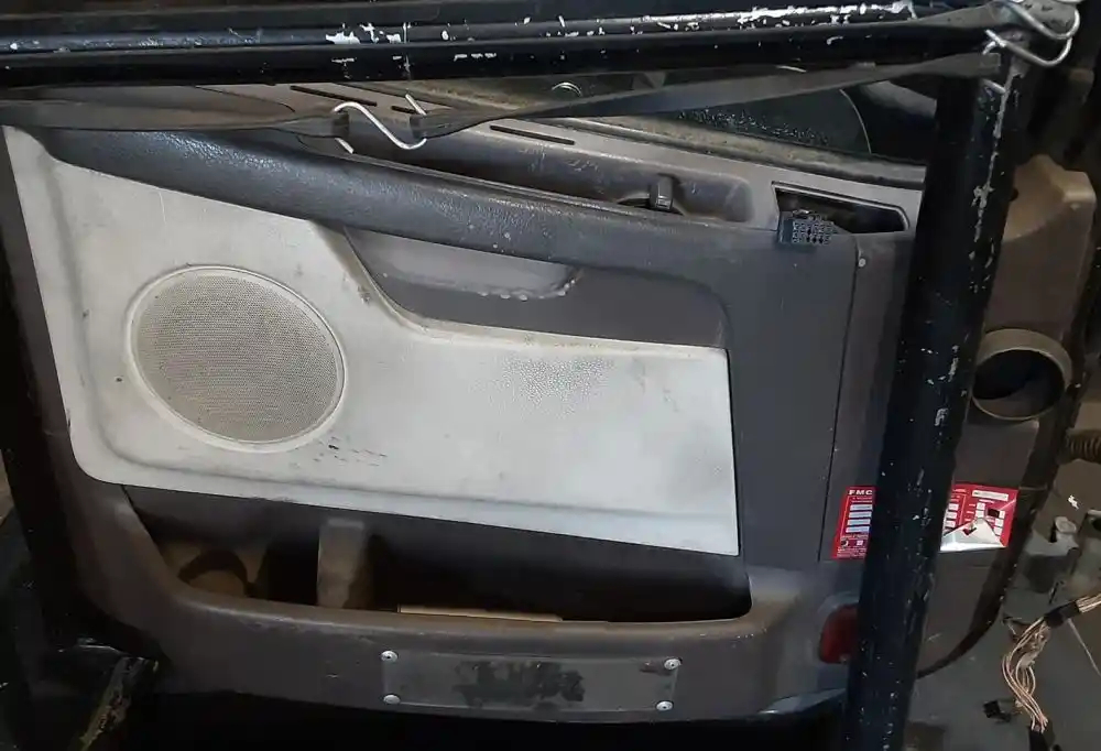 Used: Used 2013 Volvo VNL Driver Side LH Door Assembly, Power Window, Includes Mirror (Missing Back Cover), Interior Panel Shows Scuffs & General Signs Of Use, Switches Missing.