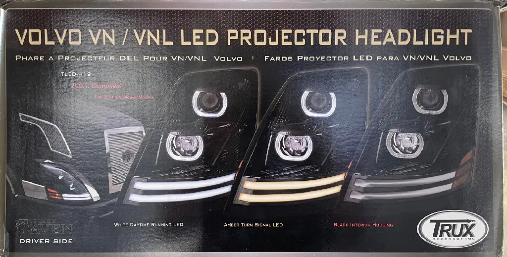 Volvo TLED-H19 VNL/VN LED Projector Headlight Assembly â Black (Driver Side) 2004 and newer.