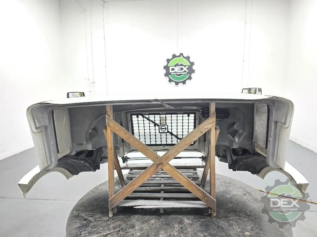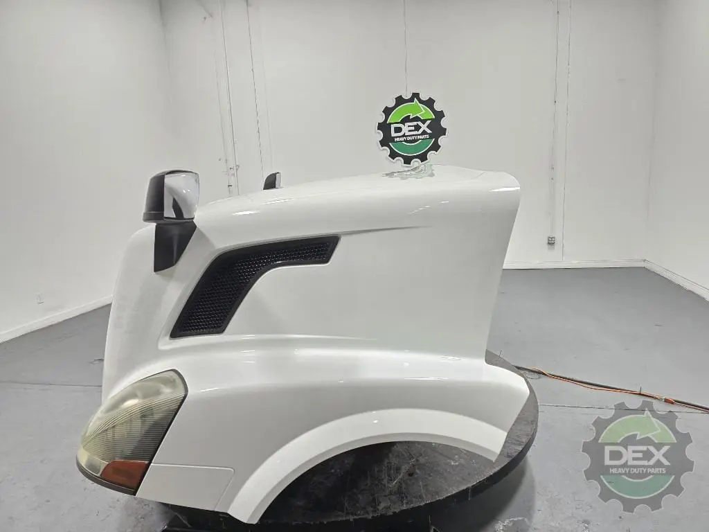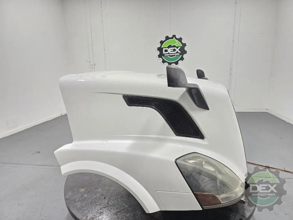 Recycled: Recycled '14 Volvo VNL GEN 2 complete groomed hood, small wheel opening, with headlights(faded), grille, spot mirrors, vents, etc..., Painted Glacier White P3029