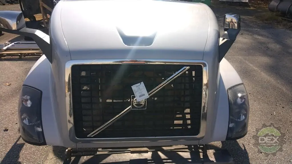 Recycled: Recycled Volvo VNL GEN 2 complete groomed hood, small wheel opening, with headlights, spot mirrors, grille, chrome vents, etc..., Painted Bright silver metalic P3010