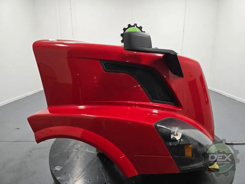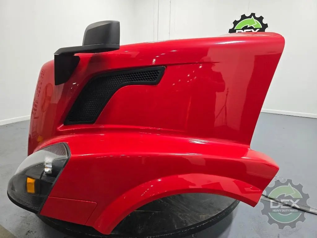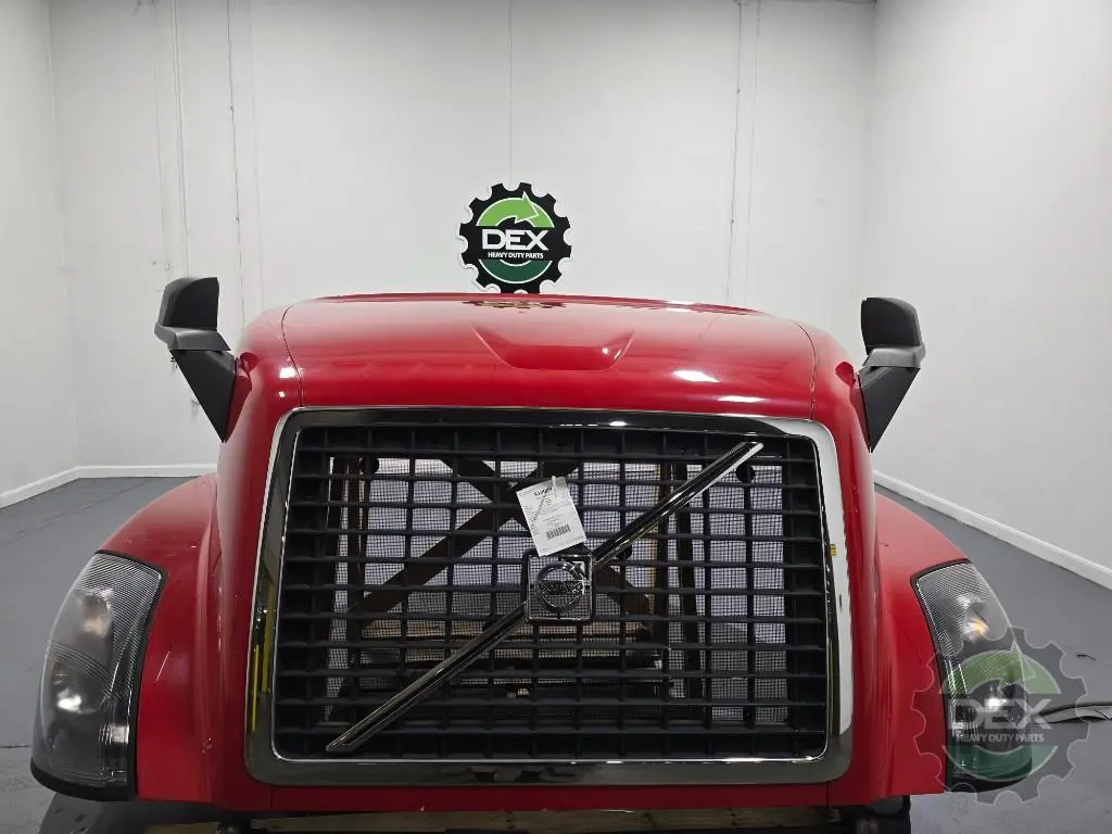 Recycled: Recycled '14 Volvo VNL GEN 2 complete groomed hood, small wheel opening, headlights, grille, vents, spot mirrors, etc..., has small rub undergrille from bumper, clear coat peal in spot on top, otherwise clean solid hood! Painted Premium Red Fire P9084