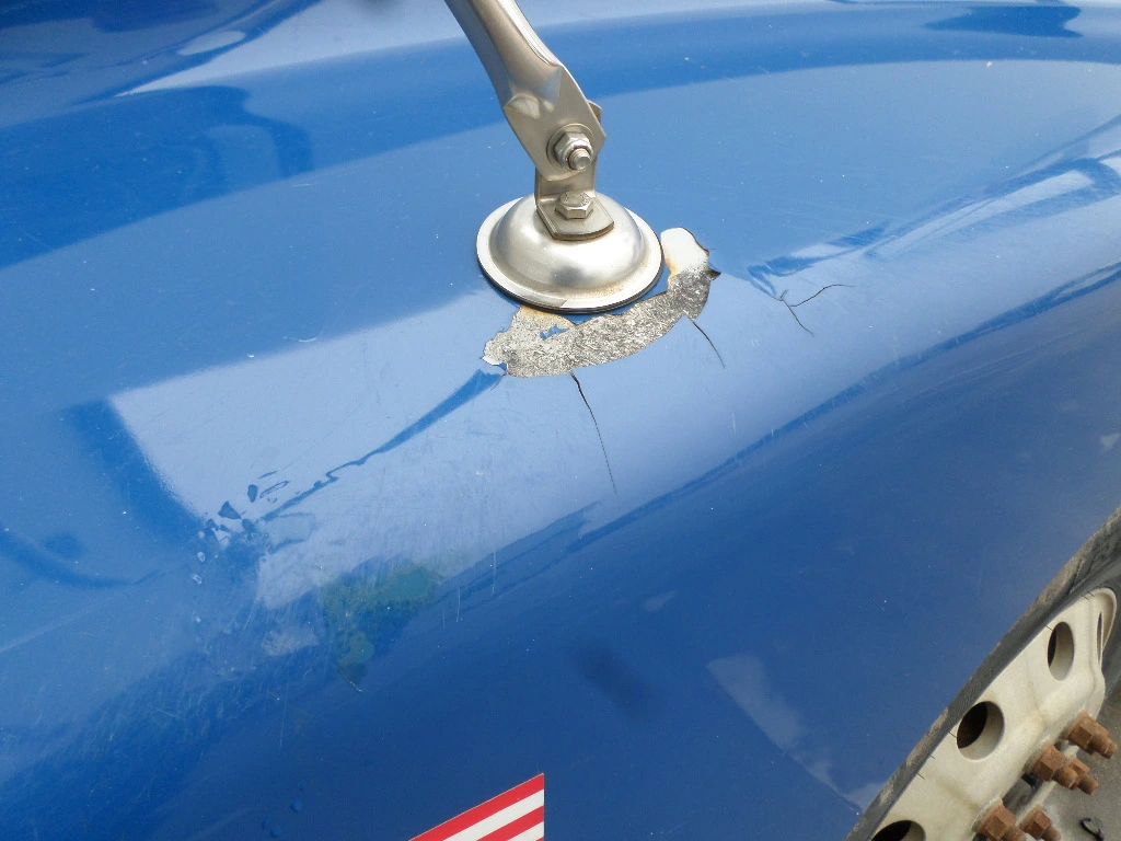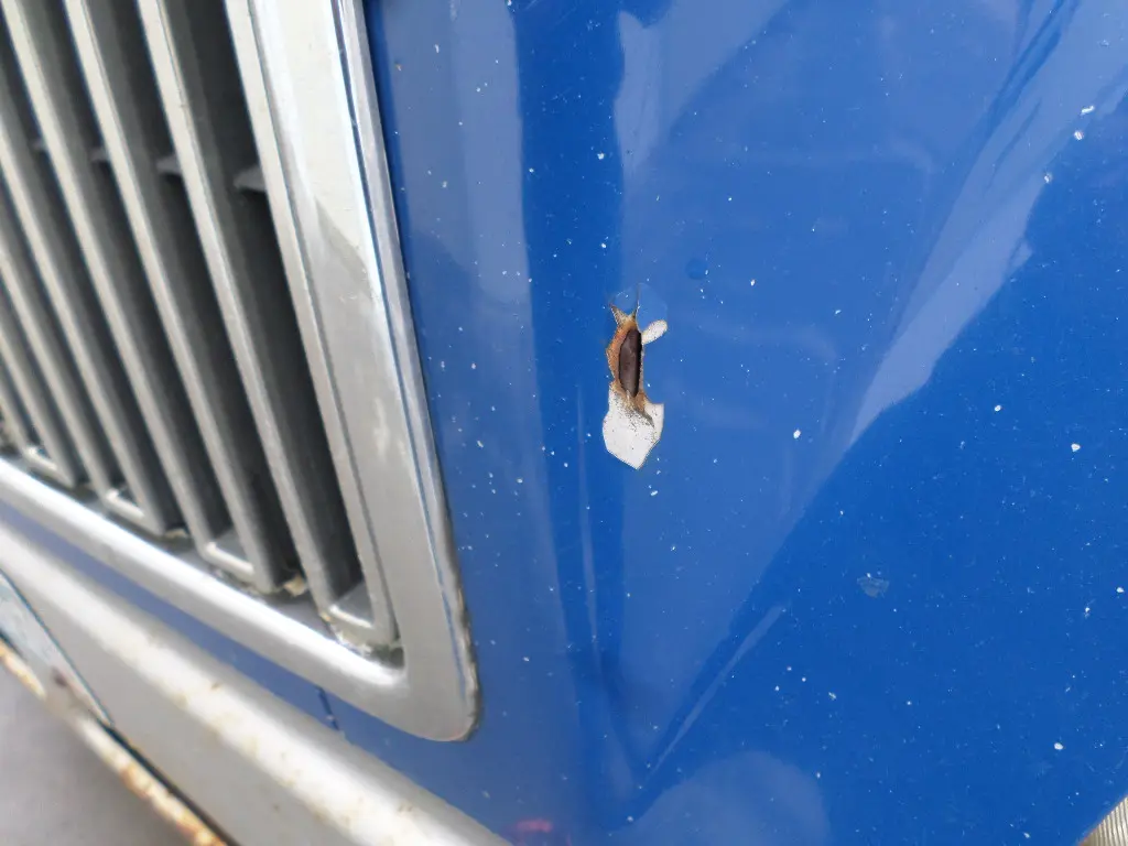 USED - A: USED - A HOOD IN GOOD SHAPE, HAS RUB MARK NEXT TO LEFT HEADLIGHT, LITTLE PAINT BUBBLE ON LEFT HAND ALSO, VNL
