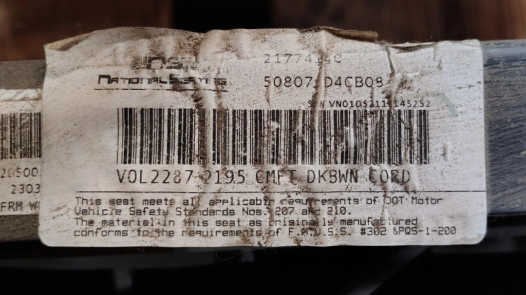 USED: USED National Seating Driver Seat, P/N 22872195