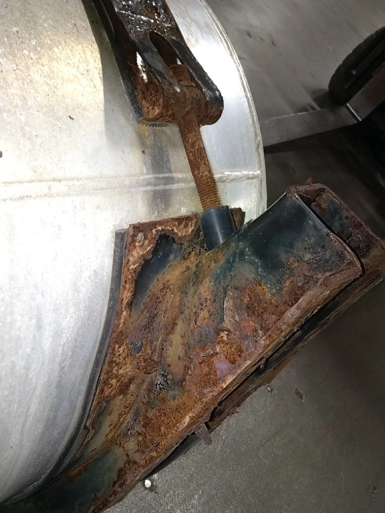 Recycled: Recycled 100 gallon aluminum D shaped fuel tank, 26" dia x 46" long with steps, straps and brackets, front fill neck