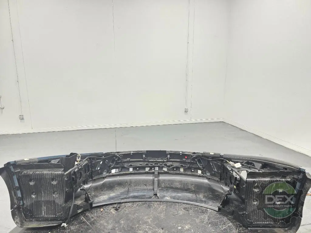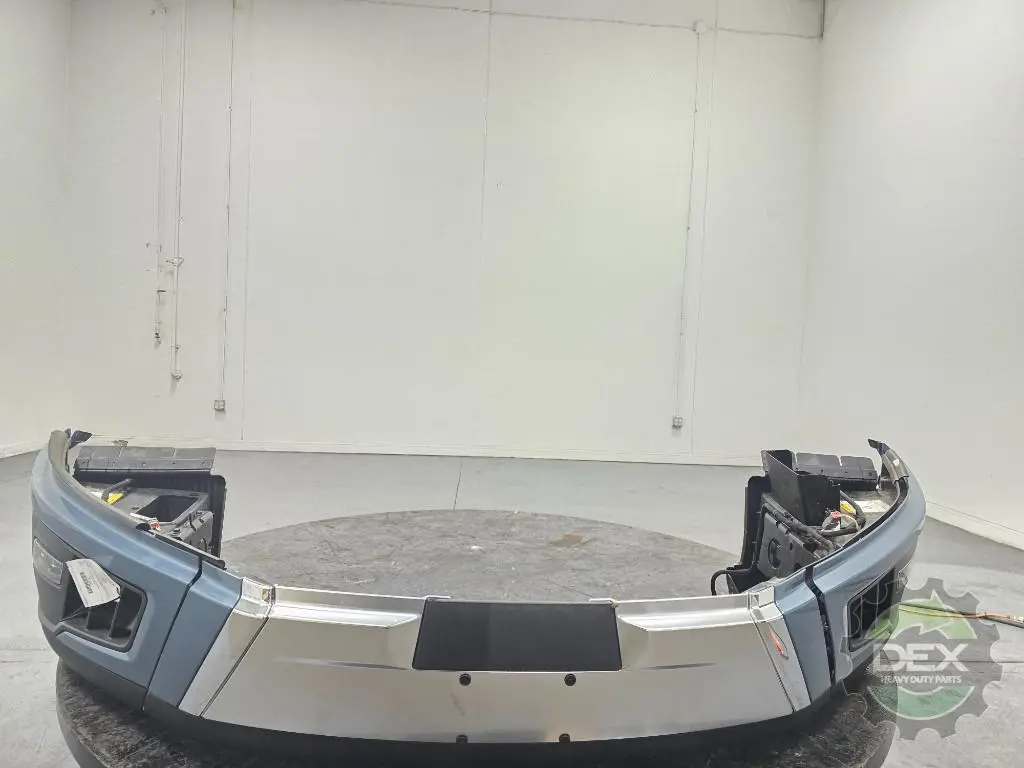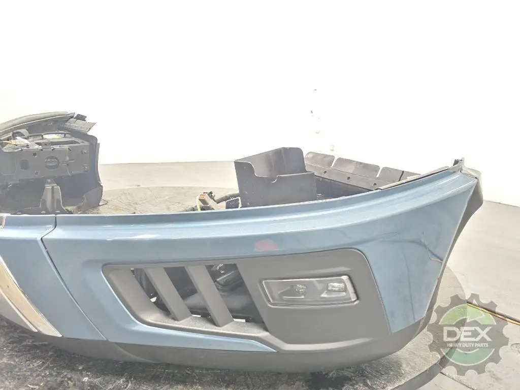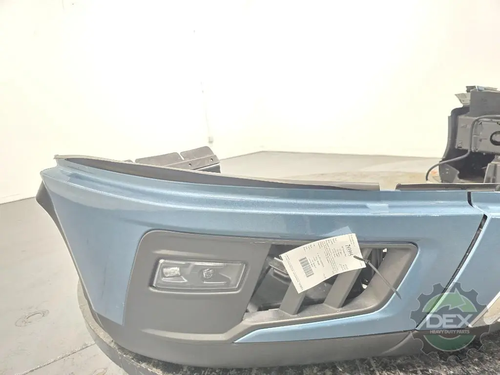 Recycled: Recycled '25 Volvo VNL front bumper assembly, Chrome center and trim with fog lights, center 24408110, painted Coastal Mist Blue P0279 corners 24384692 and 24384690, fog lights 24686769 and 24686773