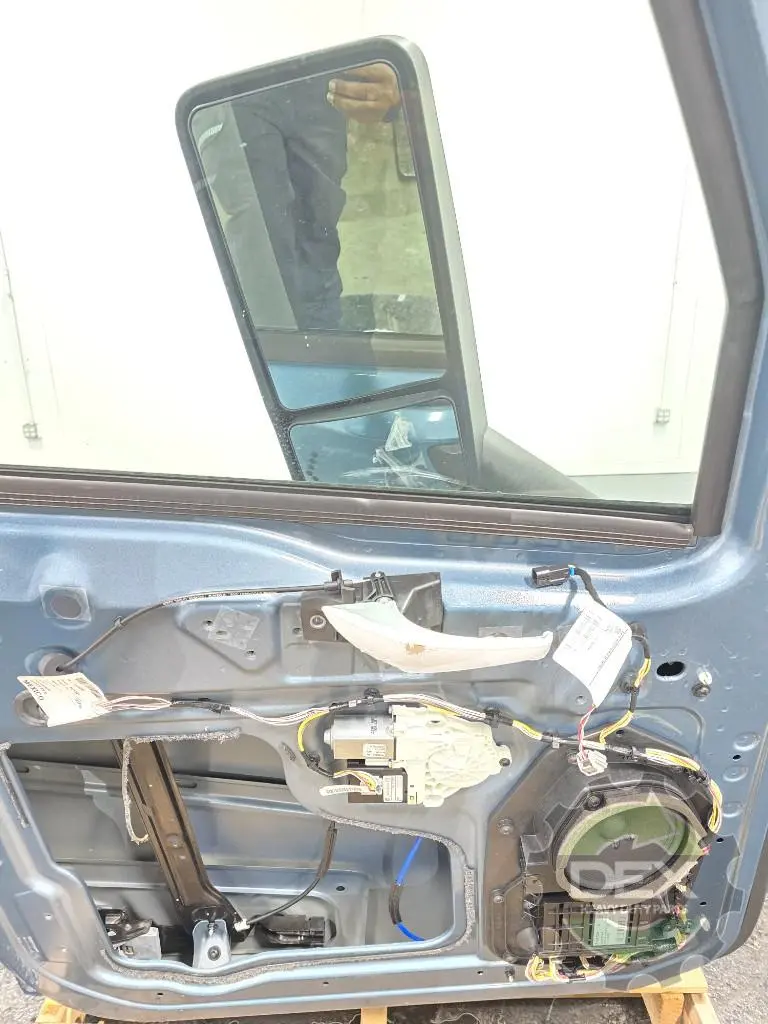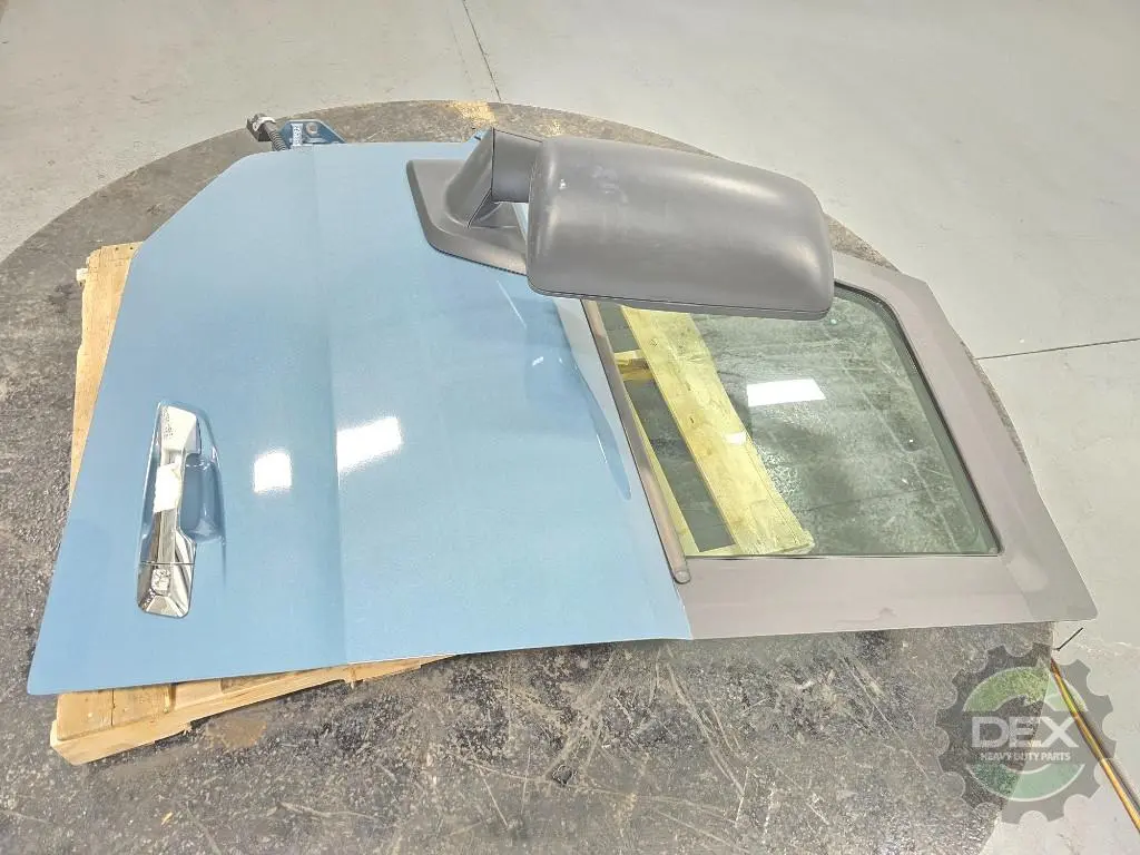 Recycled: Recycled Volvo VNL LH door assembly, groomed with glass, heated and power mirror, power window, etc... painted Coastal Mist Blue P0279