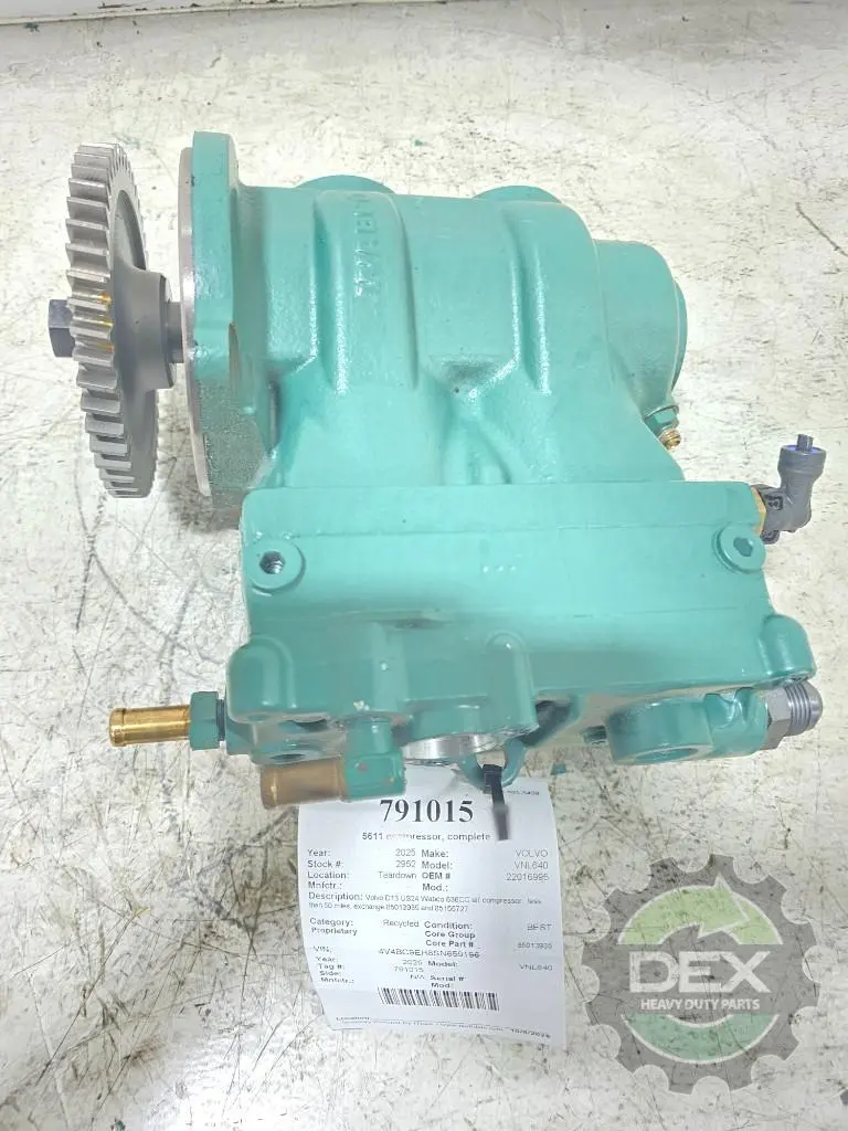 Recycled: Recycled Volvo D13 US24 Wabco 636CC air compressor, less than 50 miles, exchange 85013935 and 85155727