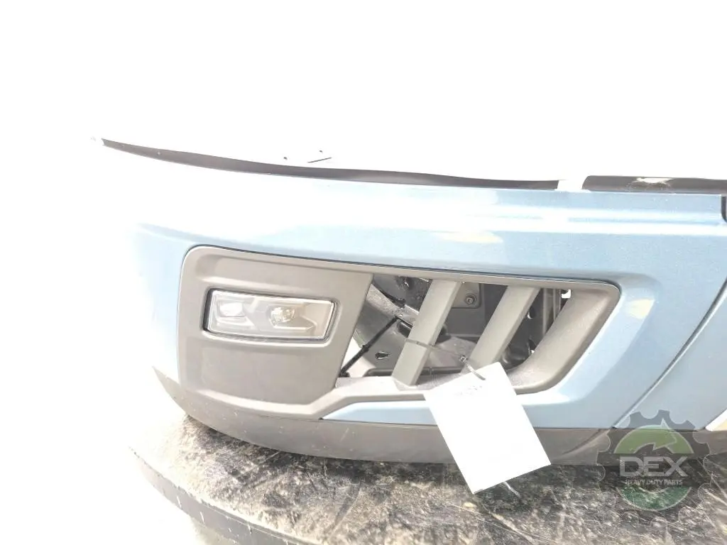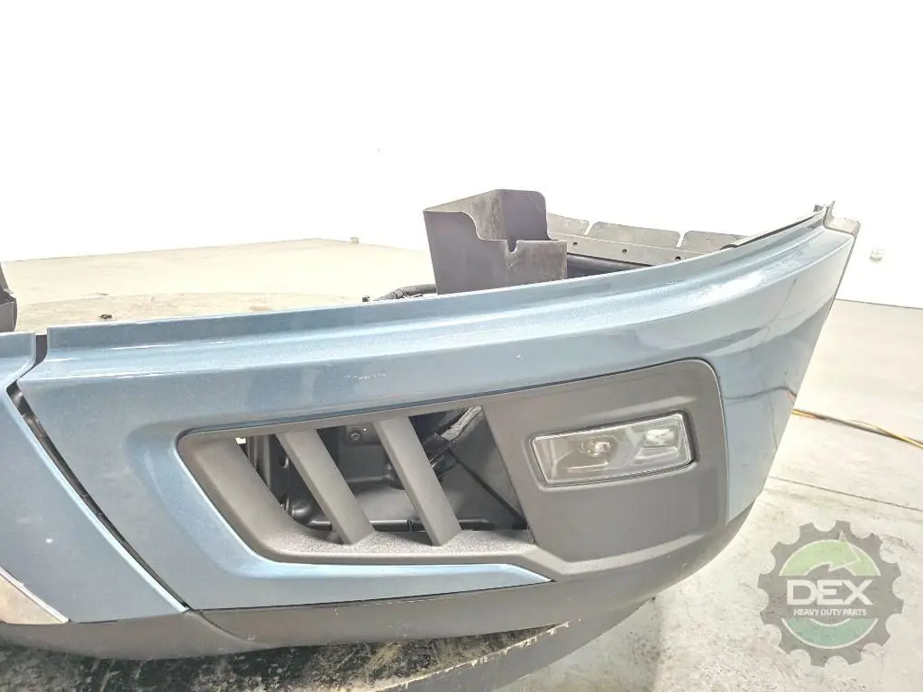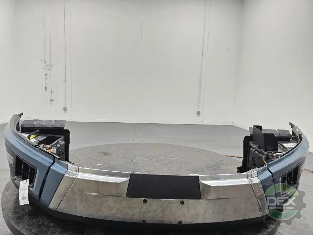 Recycled: Recycled '25 Volvo VNL front bumper assembly, Chrome center and trim with fog lights, center 24408110, painted Coastal Mist Blue P0279 corners 24384692 and 24384690, fog lights 24686769 and 24686773
