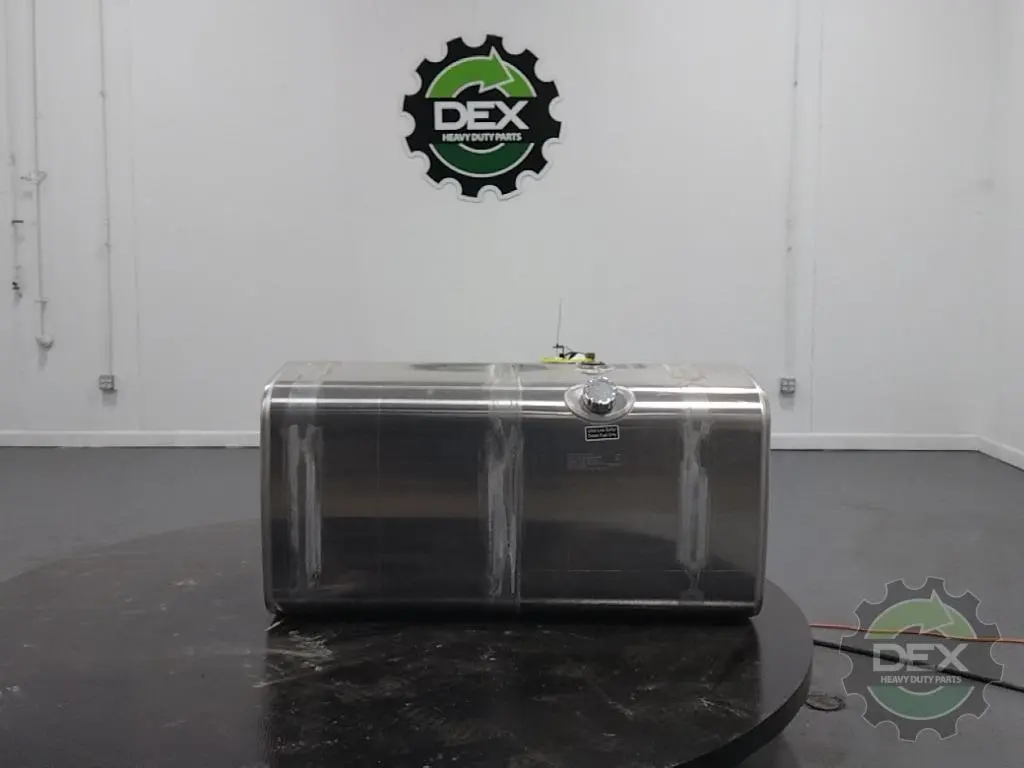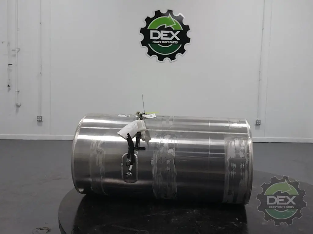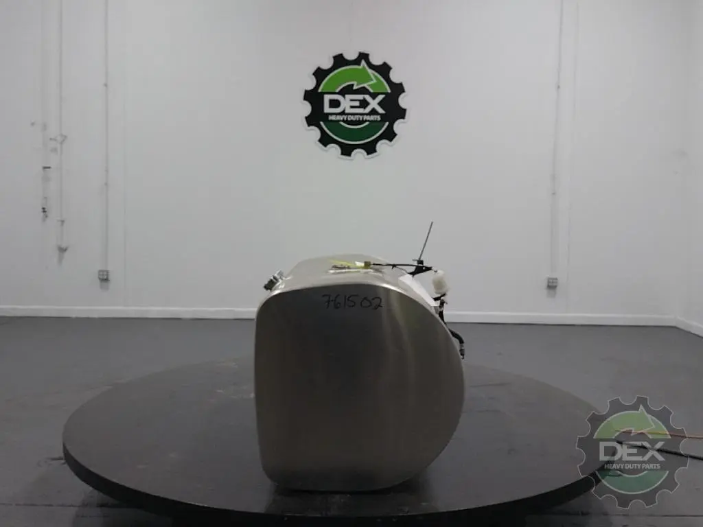 Recycled: Recycled Volvo RH 125 gallon aluminum fuel tank, D shaped, 26" dia x 51" long, front fill neck