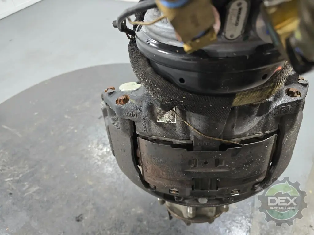 Recycled: Recycled Volvo RH front rear axle hub cutoff assembly, off housing TDAC81-3121R2280S, hub 24112775, caliper 23675035, adapter 22598629, etc...setup for hub piloted steel wheel, ABS disc brake