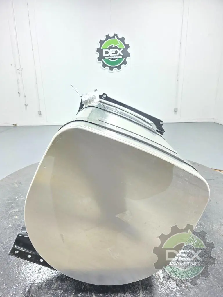 Recycled: Recycled Volvo RH 125 gallon D shaped aluminum fuel tank, 26" dia x 50" long with straps and brackets, front fill neck