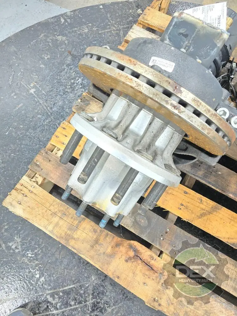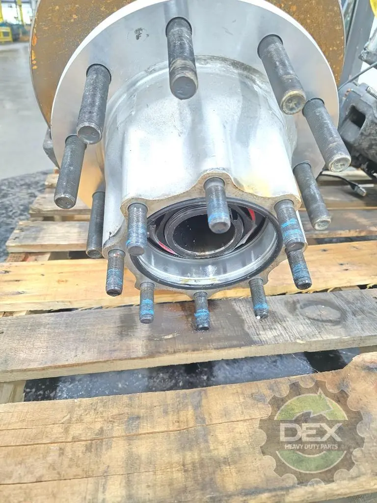Recycled: Recycled Volvo LH rear rear axle hub cutoff, off Meritor housing 24284265, hub 24112777, caliper 23675034, setup for hub piloted aluminum wheels, ABS disc brakes