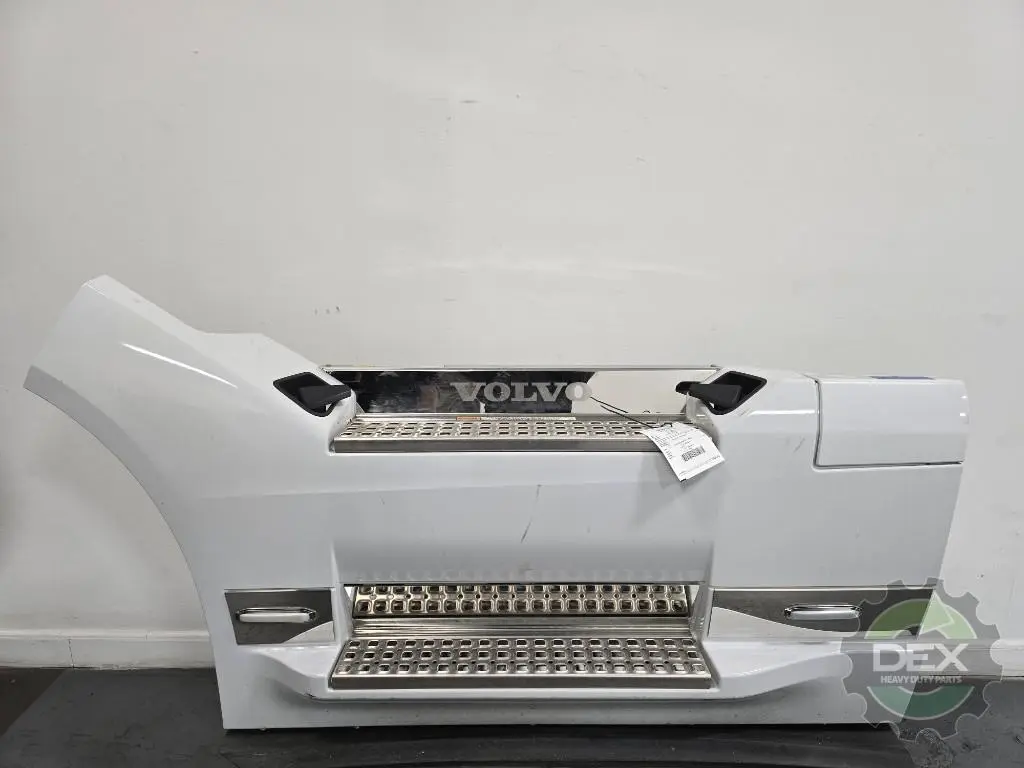 Recycled: Recycled Volvo Gen 5, LH SWO front chassis fairing with steps and Def door, 67", with panel lite trim and lights, Painted White Pearl mettalic P3739