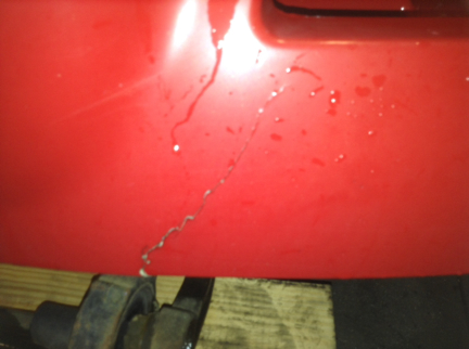 Recycled: Recycled Hood core, '05 Volvo VNM hood, crack at LH head light and wear from bumper corners