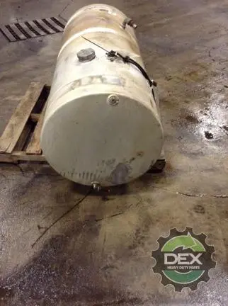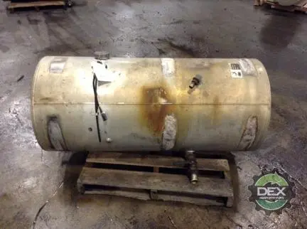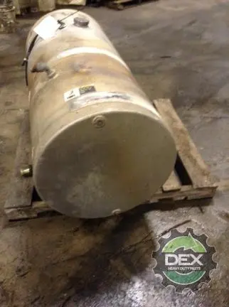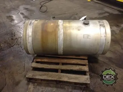 Recycled: Recycled 125 gallon aluminum fuel tank, 26" dia x 57" long with 2" crossover line fitting, front fill neck