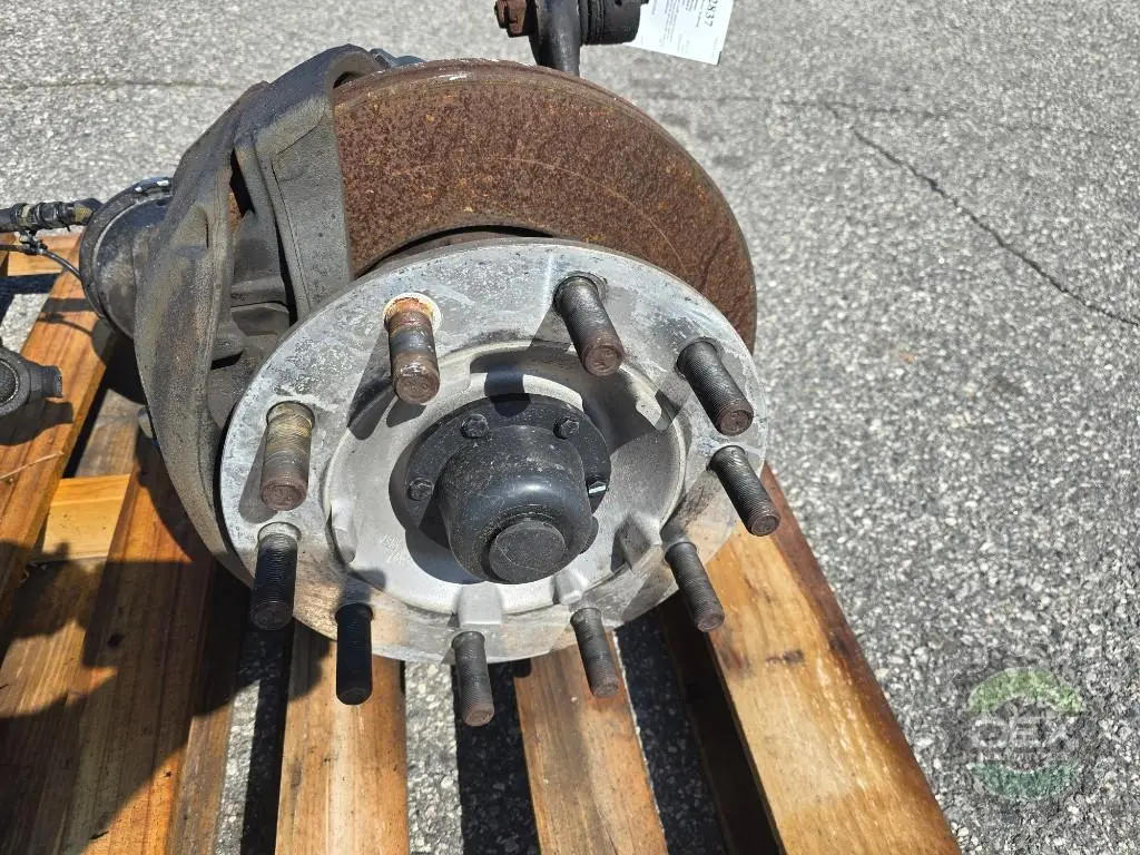 Recycled: Recycled Volvo LH steer axle hub cutoff, setup for hub piloted aluminum wheel with ABS disc brakes, off beam 22592583, uses hub 23954095, knuckle 21821627, caliper 23675019, off Volvo with 2900 miles