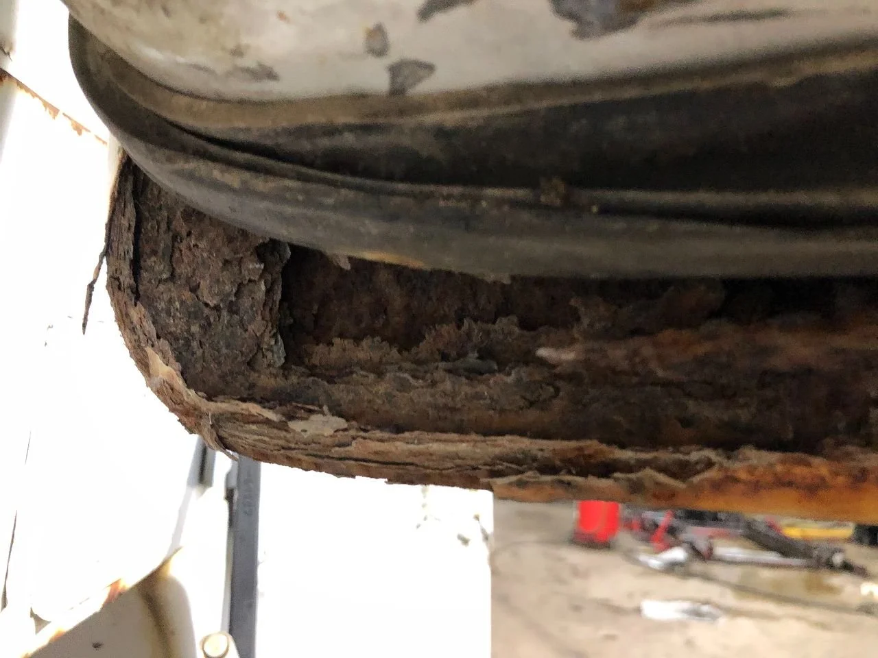 USED: USED COMPLETE, DOES NOT INCLUDE MIRROR, BOTTOM CORNERS HAVE SIGNIFICANT RUST