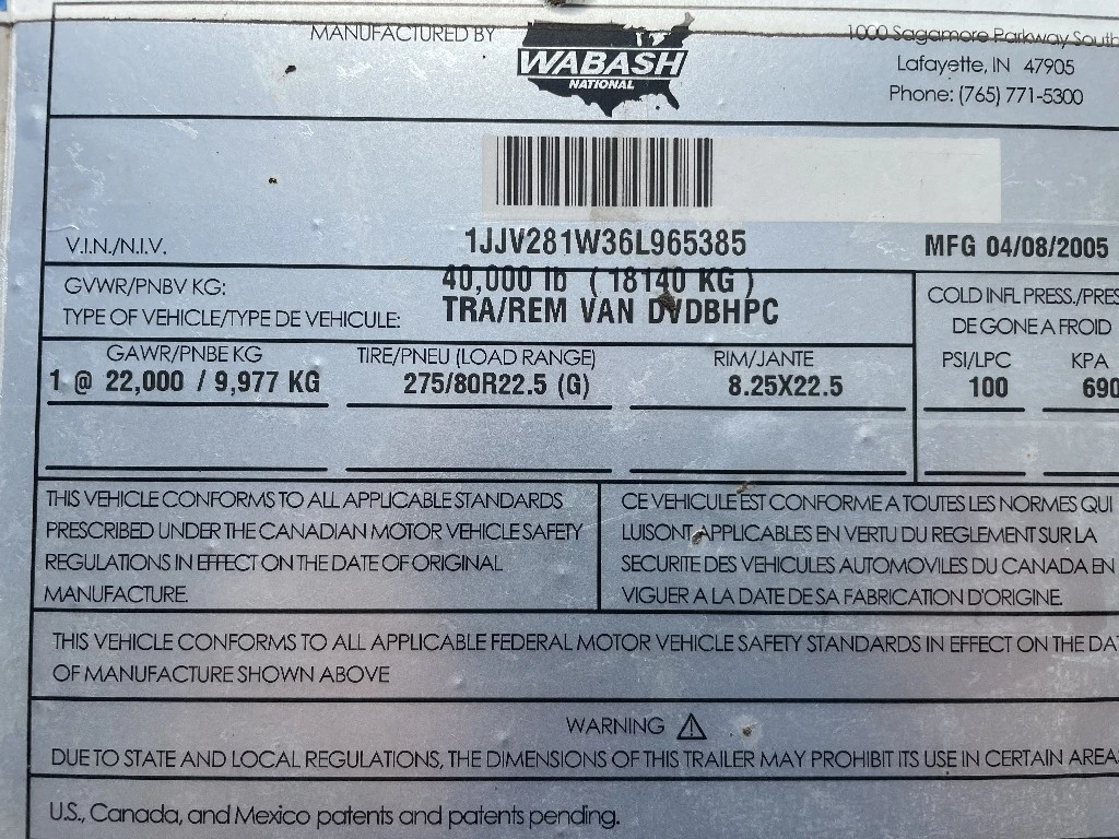 2006 WABASH 28' x 102" S/A VN TLR RRD Trailer For Sale