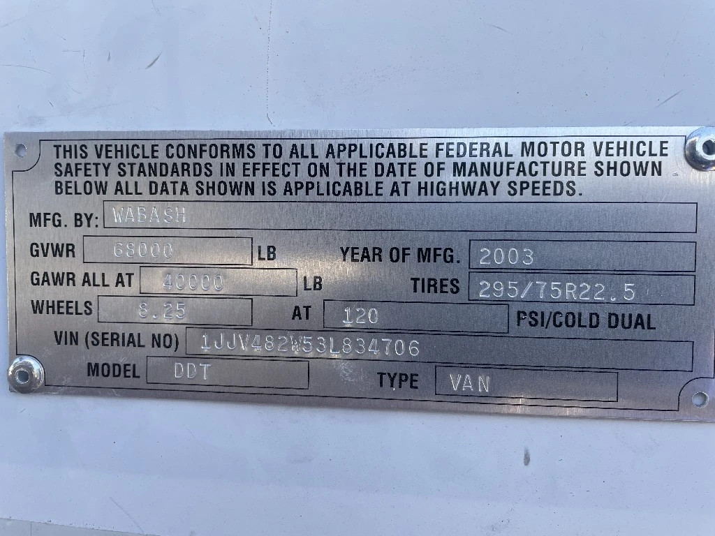 2003 WABASH 48' x 102" T/A VN TLR RRD Trailer For Sale