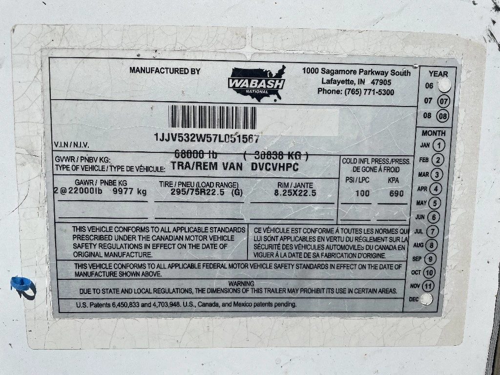 2007 WABASH 53' X 102" T/A VN TLR RRD Trailer For Sale