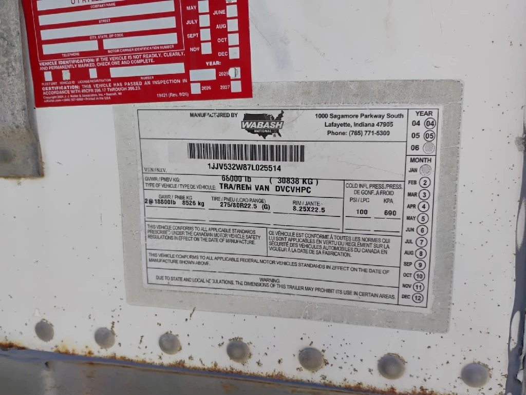 2007 WABASH DRY VAN Complete Vehicle