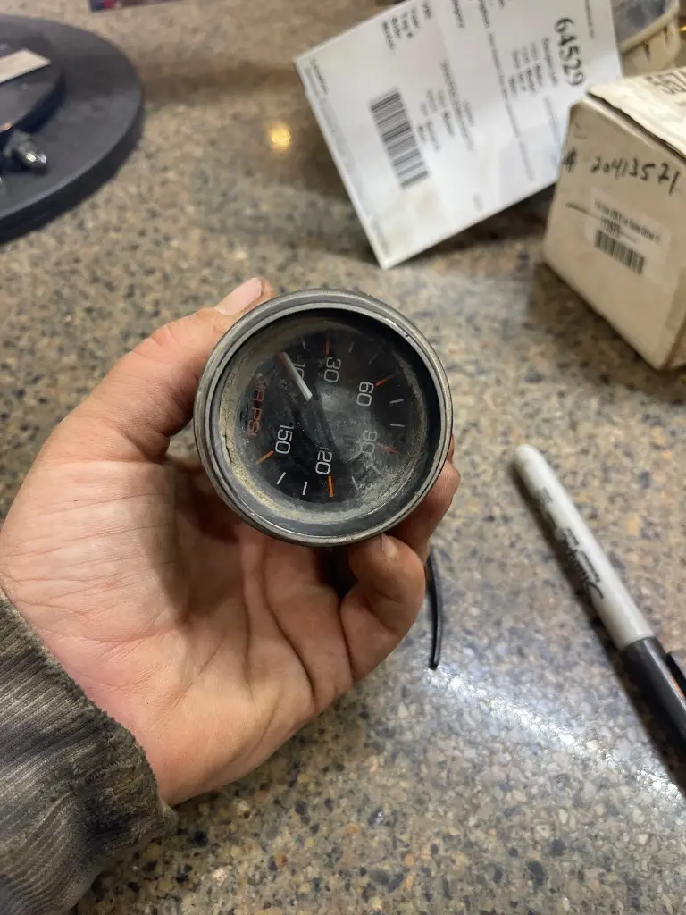 Dual air pressure gauge from a 1984 Western Star with fittings