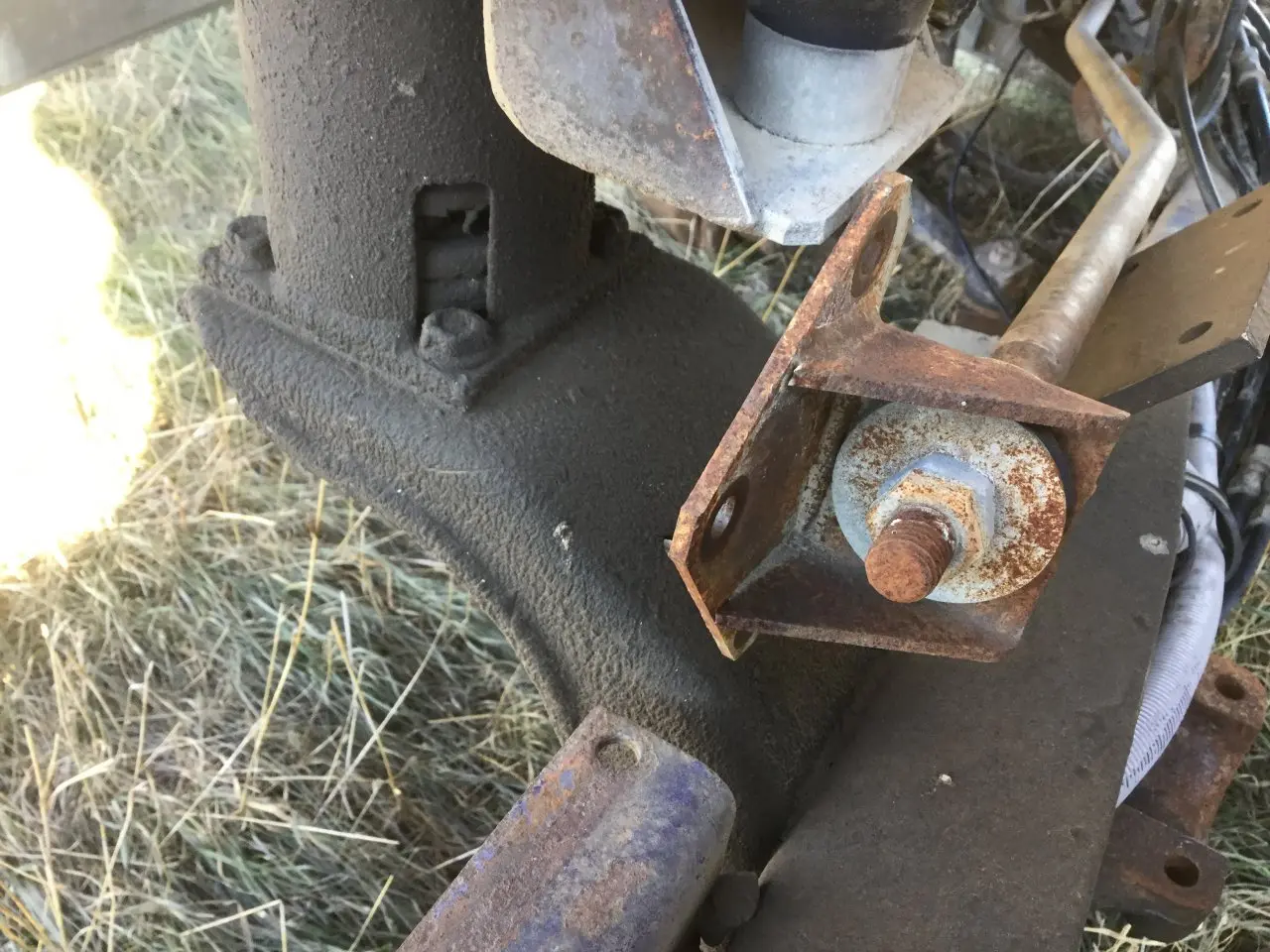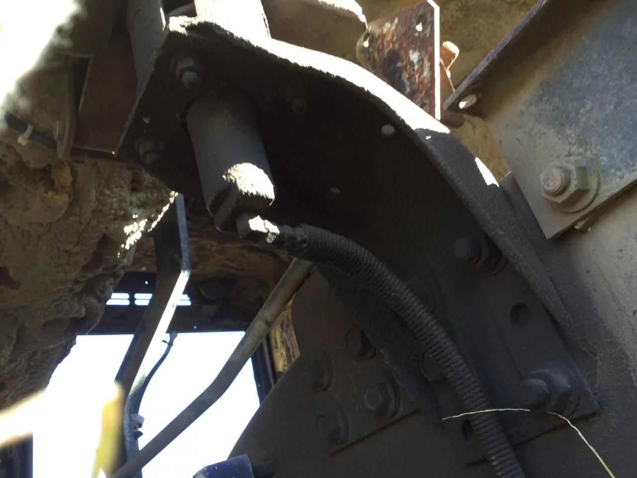 USED: USED BRACKET ONLY, LEFT REAR, MOUNTS BELOW CAB AIR RIDE SUSPENSION, BOLTS TO FRAME